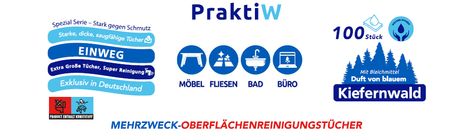 Ekstra dayanıklı mendilleri, hoş kokuları ve kalıntı bırakmayan özel solüsyonuyla PraktiW, temizlikte en büyük yardımcınız.